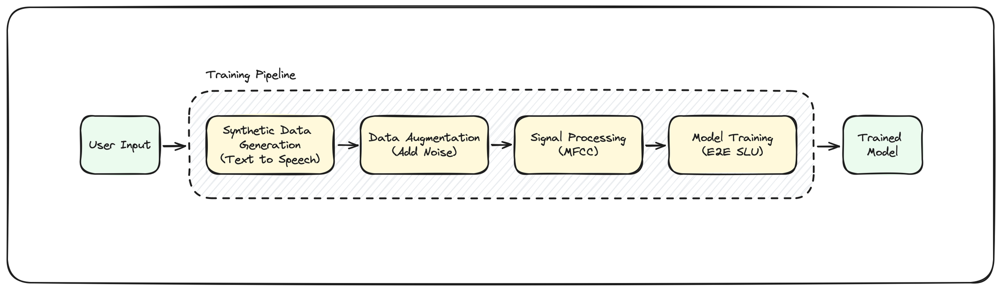 An open-source machine learning pipeline to train use case specific end-to-end spoken language understanding (E2E SLU) models for resource constrained devices.